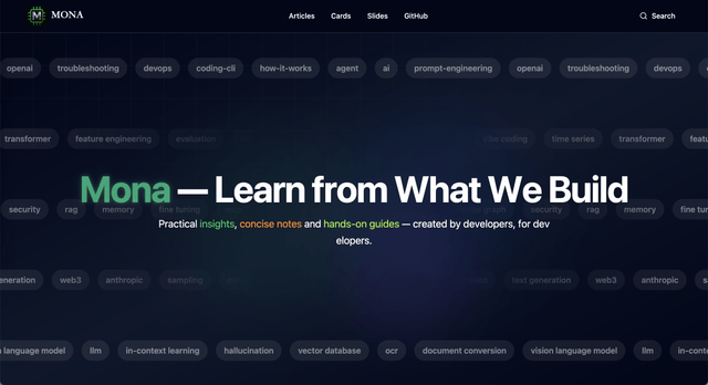 An Astro theme featuring multi-format content including knowledge cards, articles, slide presentations, and doodle announcements.