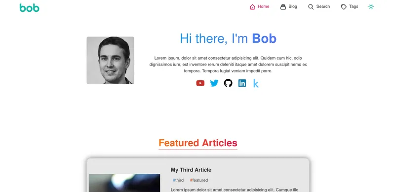 Bob's blog is a simple blog template created with Astro & Tailwindcss