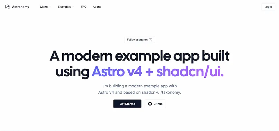 An open source application built using the latest features in Astro v4 with shadcn/ui.