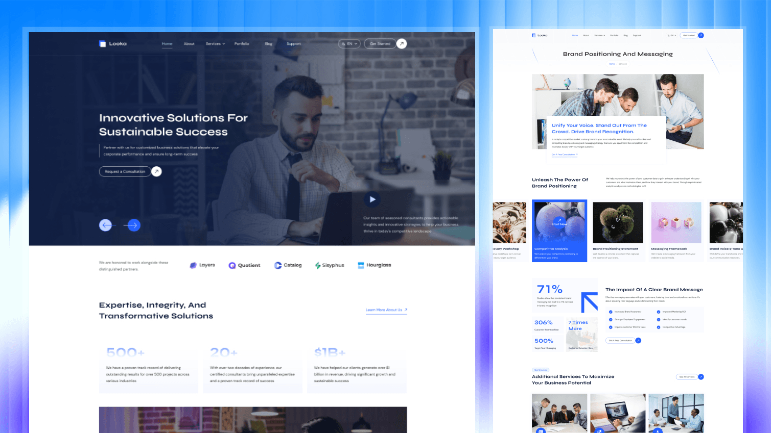 - Looka β A professional theme crafted for consultants, agencies, IT services, legal, and finance β built with accessibility, speed, and conversion in mind.