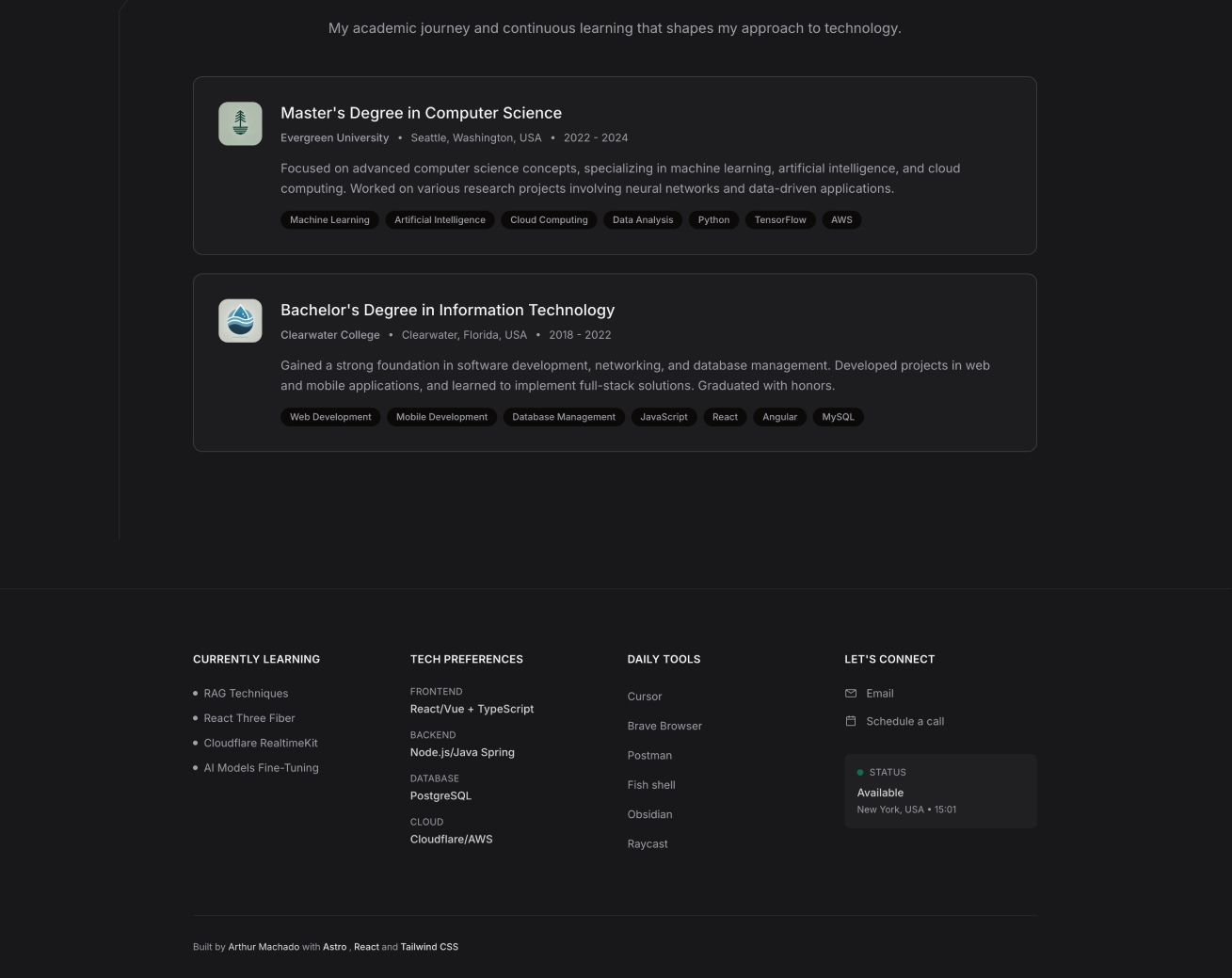 • Live Data Integration - Real-time GitHub commit statistics and WakaTime tracking